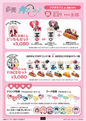 TVアニメ『多聞くん今どっち!?』のコラボカフェが、2026年2月27日より東京・原宿の洒落CAFEハラカド店と福岡・博多の洒落CAFE博多マルイ店にて同時開催いたします。