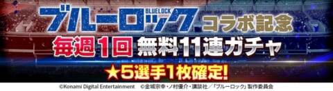 キャンペーン期間中、「毎週1回無料11連ガチャ」を提供します。このガチャでは、「★5選手」が1枚確定で手に入ります。