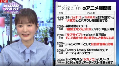 今回の番組ゲストである久保ユリカさんは、「私のアニメ履歴書」コーナーで驚きのエピソードを披露しました。