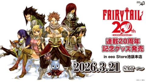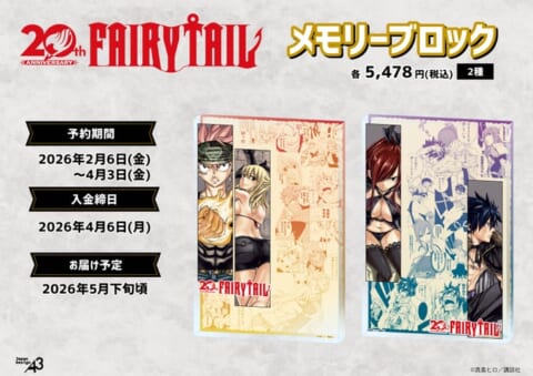 真島ヒロ先生による王道ファンタジー漫画「FAIRY TAIL」の連載20周年を記念した新作グッズが発売決定。2026年2月6日より通販、3月21日より店舗販売が始まります。