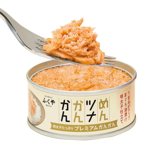 「めんツナかんかん」は、2015年の発売以降累計950万缶以上の販売実績を持つ人気商品です。国産びんながまぐろに明太子の漬け込み液をなじませ、旨みと辛みをプラスしています。「めんツナかんかん〈プレミアム〉」では、1缶に約20%の明太子の粒をたっぷり加え、上質な綿実油で仕上げています。ごはんにも合う、ぴり辛でおいしいご馳走ツナ缶として、メディアでも多数取り上げられてきました。 |