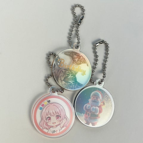 お好きな写真やイラスト、描き下ろしデザインを使用して、自由にカスタマイズできる点が特長です。透明部分を活かしたデザインも透過画像で美しく表現し、表現の幅を広げます。イベントの物販アイテムやノベルティ、また「推し活」グッズとしても幅広く活用でき、世界に一つだけのオリジナルアイテムを作成するのに最適な商品です。