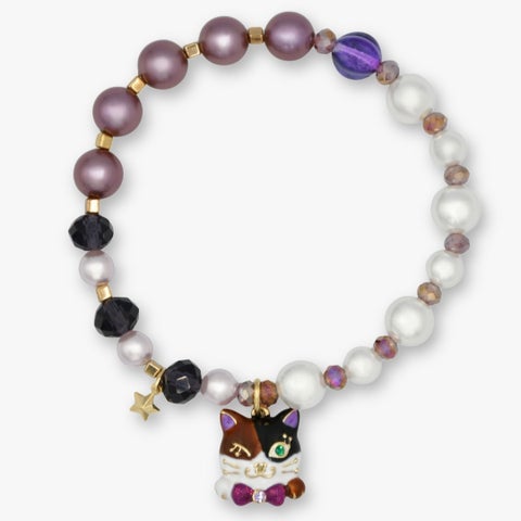 本コレクションは、ANNA SUIの象徴的な猫であるTITIに、愛らしい三毛猫のデザインを施しました。ウィンクする表情や、ふと振り返るポーズが特徴で、見る人の心を和ませます。尻尾にとまった蝶や首元の紫のリボンは、ANNA SUIらしいブランドの世界観を表現するアクセントです。身につけるだけで気分が高まる、魅力的なアイテムが揃っています。