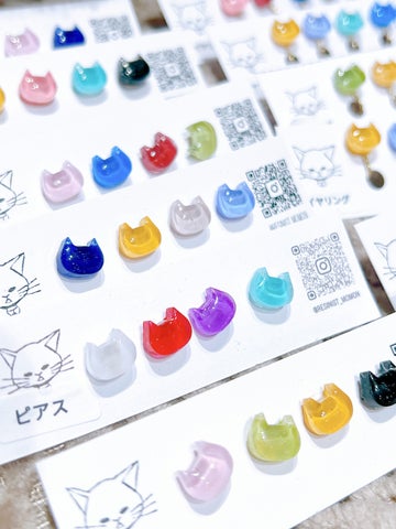 「Runon」と「momon」が共同出展し、猫好きの心をくすぐるアイテムを揃えます。「Runon」は樹脂を使い陶器のような風合いに仕上げた一点ものの猫ブローチが特徴で、一匹ずつ異なる表情や個性が魅力です。「momon」は、きらきら輝くカラフルな猫を主役にしたアクセサリーを提供し、繊細なラメやスワロフスキー、琉球ガラスのかけらで上品な可愛らしさを演出します。