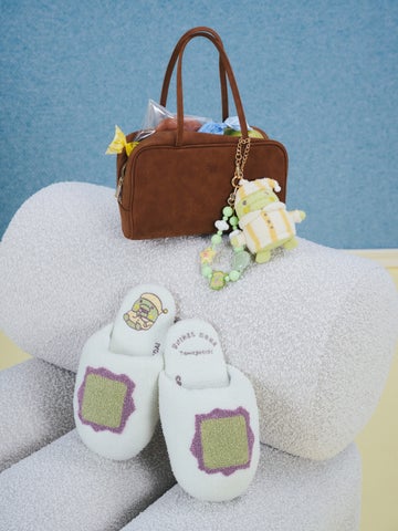 本コレクションでしか手に入らないオリジナルイラストデザインのニットシリーズは、たまごっちをイメージしたカラーを春らしいニュアンスカラーで仕上げました。たまごっちたちがSNIDEL HOMEのルームウェアをまとった姿や、たまごっちデバイス、月や雲をモチーフにしたオリジナルボタンや刺繍が魅力です。ルームウェアの他、ヘアターバンやルームシューズ、ぬいぐるみチャームといった雑貨アイテムも充実し、日常にたまごっちの愛らしさを加えます。ぬいぐるみチャーム、スマホストラップ、ニットブランケット、ヘアクリップには、いちごっちも登場します。