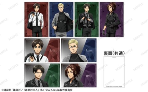 - ECサイト「AMNIBUS」およびアニメイトでは、BOX購入特典として「描き下ろし エレン ハーネススタイルver. トレーディンググリッター缶バッジ AMNIBUS&アニメイト限定特典」を予定しています。