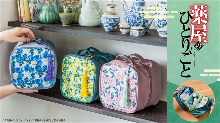 TVアニメ『薬屋のひとりごと』の世界観を彩る花々をデザインした「せり上がりお薬箱ポーチ」が登場しました。ガバッと開くと収納スペースがせり上がる構造で、サイズや形状がさまざまなお薬はもちろん、処方箋袋も丸ごと収納できます。すっきり整頓できる3層構造やメッシュポケットが付属し、中身が見やすい設計です。
