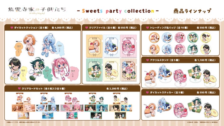 「紫雲寺家の子供たち」新規描き起こしグッズ「Sweets party collection」のラインナップ