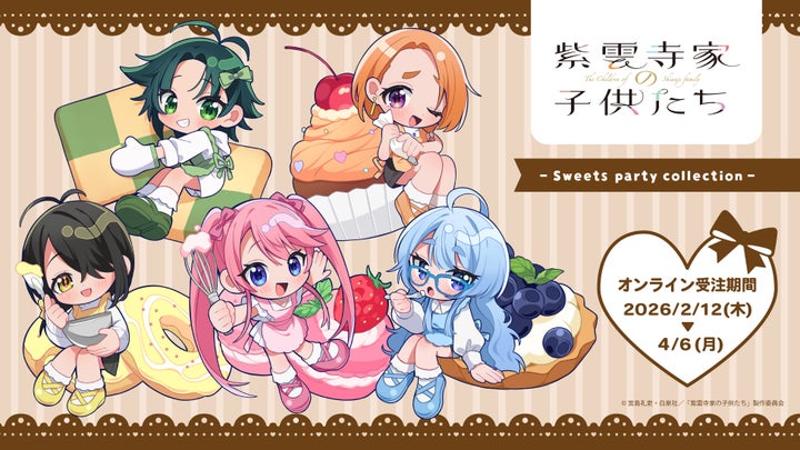 TVアニメ「紫雲寺家の子供たち」の新規描き起こしイラストを使用したグッズ「Sweets party collection」が、「AnimeJapan 2026」での販売に先立ち、QINOCOPストアにて先行予約販売を開始しました。人気ラブコメディ作品の世界観を反映した、ファン必見のアイテムが多数登場しています。