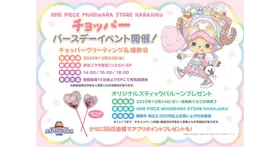 2025年12月8日リアルイベント ONE PIECE MUGIWARA STORE HARAJUKU チョッパー ワンピース「ONE PIECE MUGIWARA STORE HARAJUKU」では、2025年12月24日(水)よりチョッパーの... -