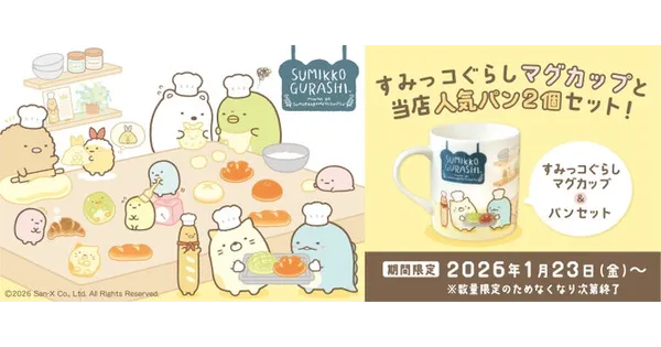 すみっコぐらし「パンきょうしつ」マグカップ&パン2個セット!数量限定販売!