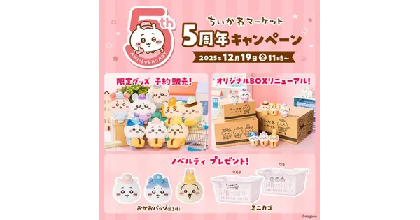 2025年12月4日 12:46ちいかわ公式WEB SHOP「ちいかわマーケット」は、開設5周年を記念し、2025年12月19... -