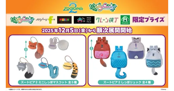 ズートピア2 プライズ登場!かわいい"しっぽ"マスコット&リュック!12/5から