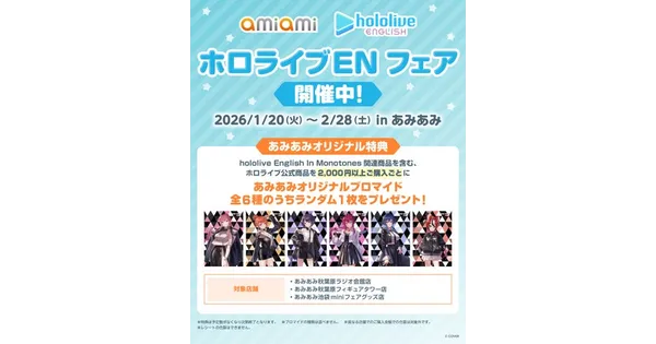 2026年1月24日 15:53「あみあみ」にて、『ホロライブEnglish』メンバーをモノトーンカラーでデザインし... -