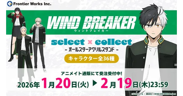2026年1月20日 16:03株式会社フロンティアワークスは、TVアニメ「WIND BREAKER」のアクリルスタンド全3... -