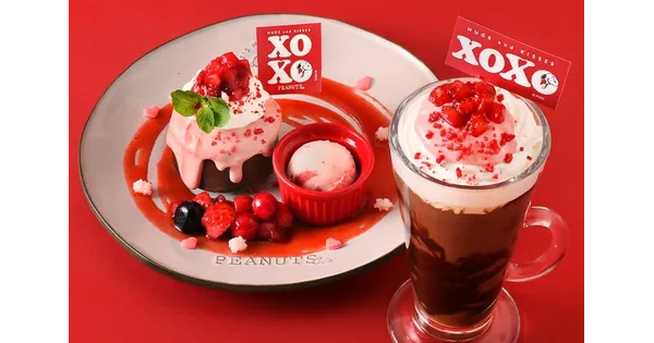 恋の季節を彩るPEANUTS Cafeの「XOXO」メニュー、ショコラケーキとホットココアが登場