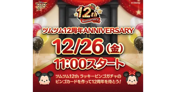 2025年12月23日 12:40LINEヤフー株式会社が運営する『LINE:ディズニー ツムツム』は12月26日の12周年を... -