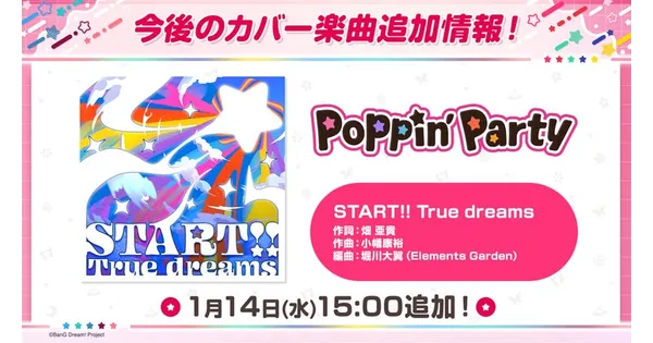 ガルパ新カバー曲!Poppin'Partyが歌う『START!! True dreams』追加情報!