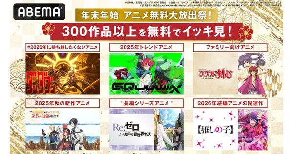2025年12月23日 11:15ABEMAは2025年12月22日より、「年末年始 アニメ無料大放出祭」を開催します。300作... -