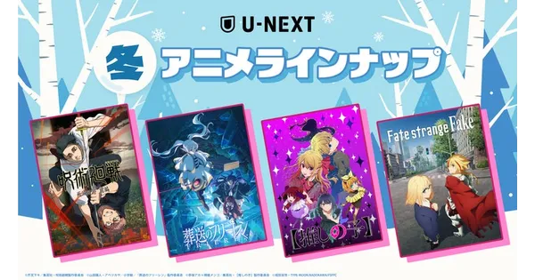 U-NEXT冬アニメ2026 フリーレン2期、呪術廻戦など45作品以上!先行配信も
