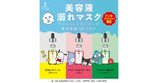2025年10月31日 19:46『ONE STONE TWO BIRDS』の美容マスク「原液美容100マスク」とサンリオキャラクタ... -