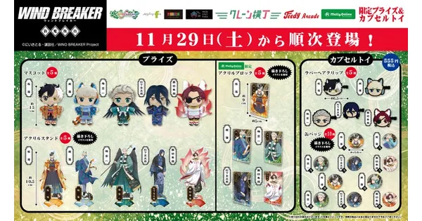 2025年11月26日 17:29TVアニメ『WIND BREAKER』の限定プライズとカプセルトイが、2025年11月29日(土)...