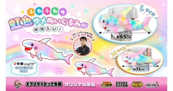 過去最大級のふわふわ感!虹色サメぬいぐるみがエブリデイ景品に登場!