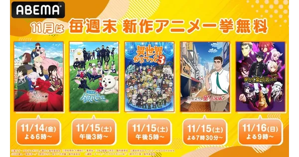 2025年11月13日 19:31新しい未来のテレビ「ABEMA」は、11月の毎週週末に実施している新作秋アニメ無料一... -