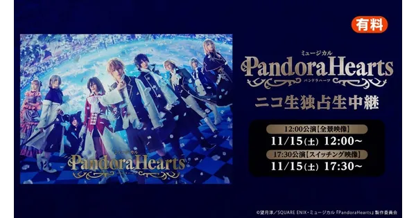 2025年11月9日 14:57ミュージカル『PandoraHearts』の2025年11月15日(土)に開催される2公演が、ニコニ... -