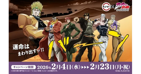 2026年1月28日 14:04スシローと大人気シリーズ『ジョジョの奇妙な冒険 スターダストクルセイダース』が... -