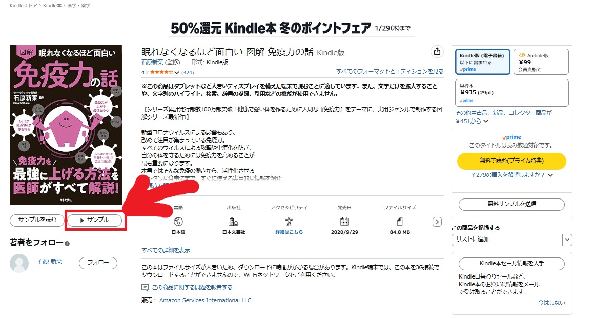 - サンプルを確認: 購入前に「サンプルを読む」をクリックすると、内容の一部を確認できます。必須ではありませんが、サンプルを見れる場合は確認することをおすすめします。