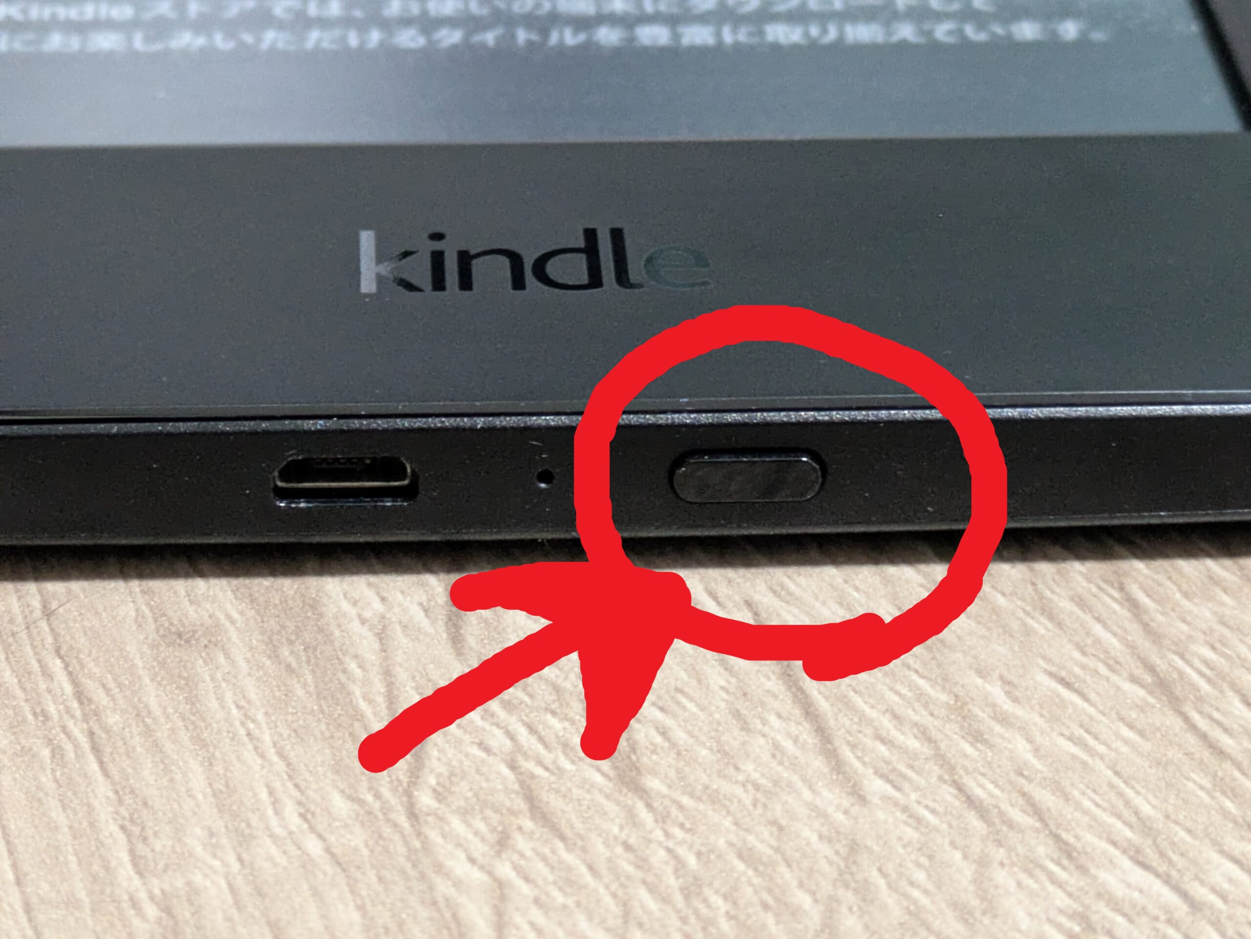 Kindleデバイスの電源は、デバイス下部の電源ボタンで管理します。
