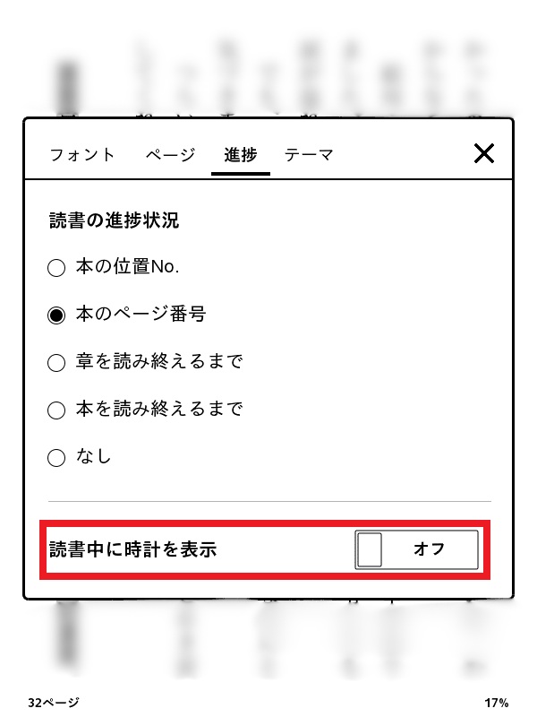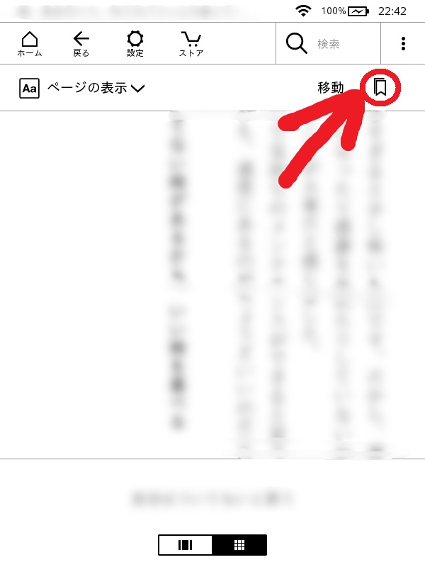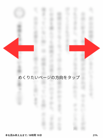 - 読書中にページの中央部分をタップし、読書メニューを表示します。