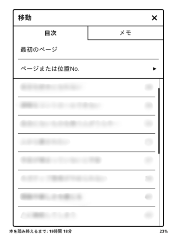 本の中で特に読みたいページがある場合、目次から読みたいページにジャンプすることも可能です。