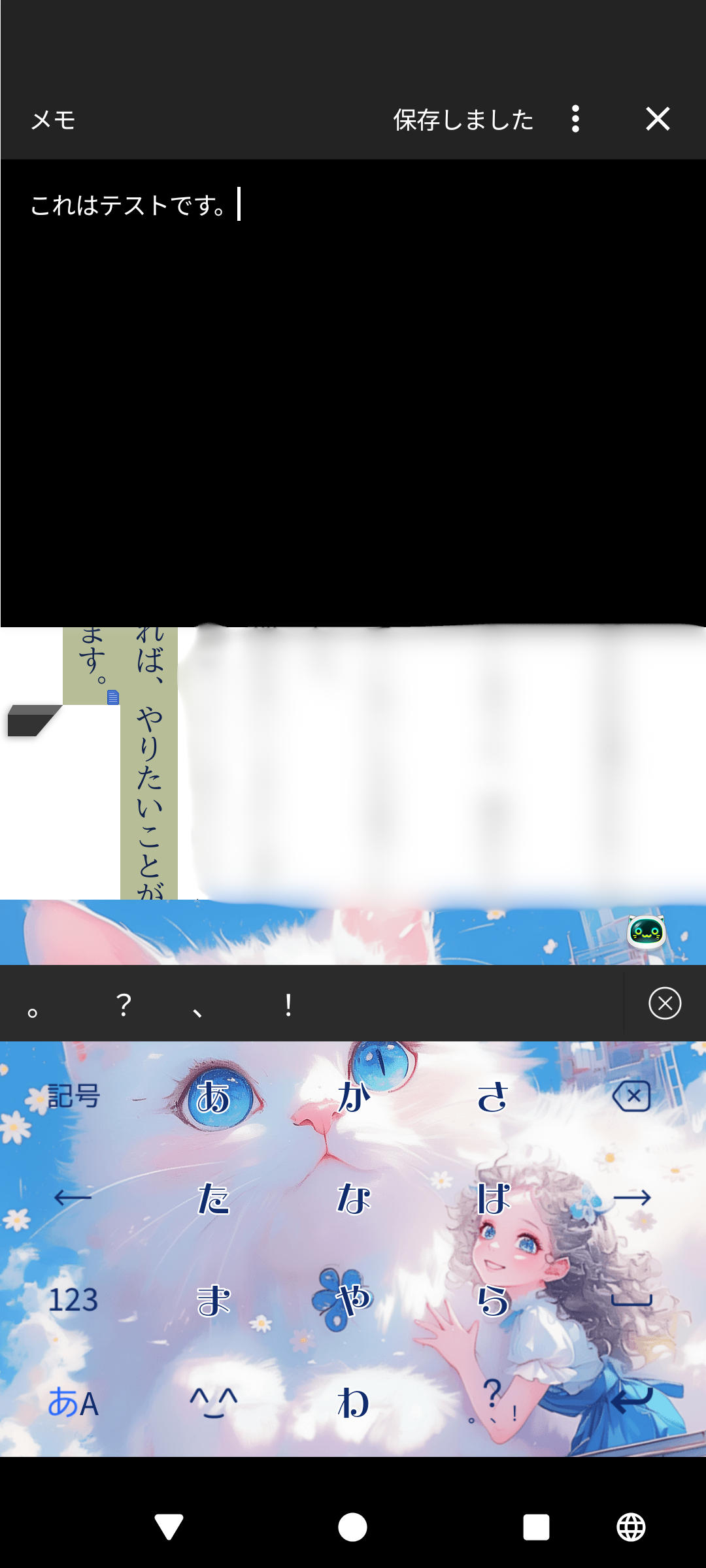 ▼メモを追加したい部分を長押しして選択し、メニューが開いた状態。ここで「メモ」をタップ