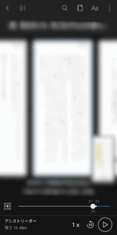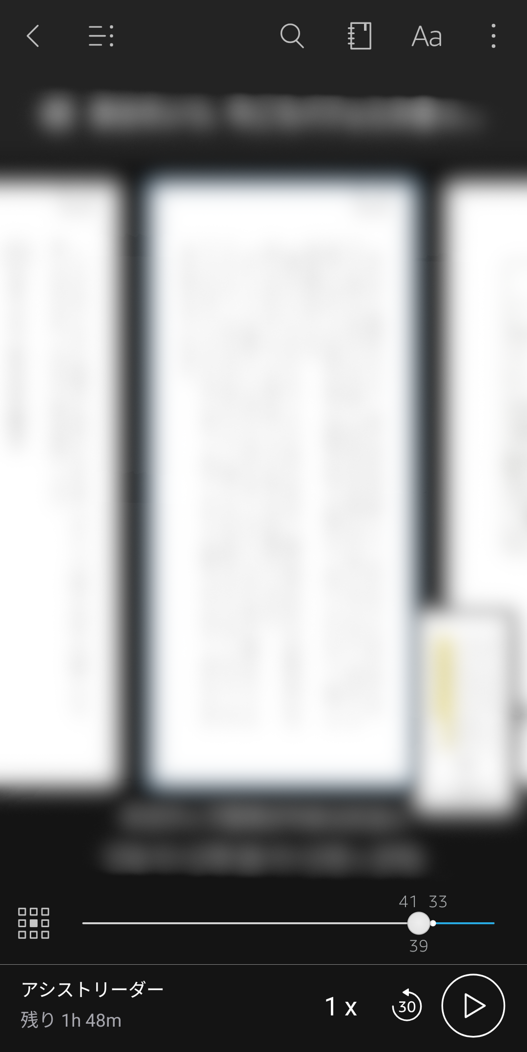 - アシストリーダーがオンの状態でページをタップすると、下部にアシストリーダーメニューが表示されます。再生ボタンをタップすれば、表示されているページの冒頭から読み上げが開始されます。