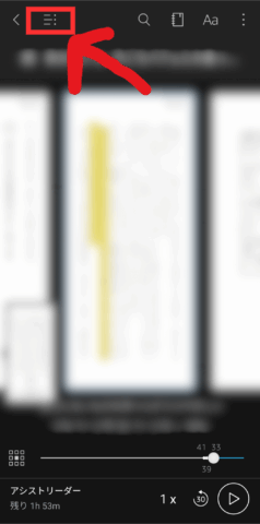 - 読書中に画面をタップしてメニューを表示し、左上の目次ボタンをタップします。