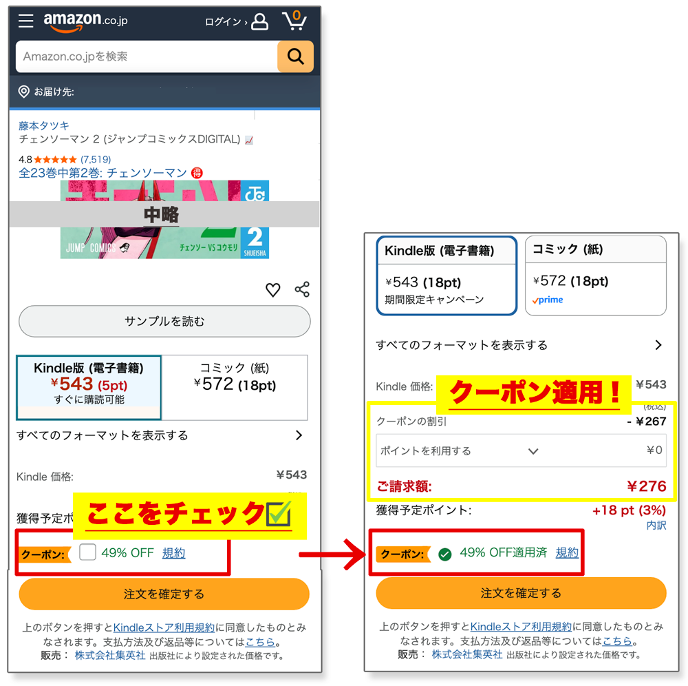 購入前にAmazonのページで「クーポン」を適用するチェックボックスにチェックをしてください!