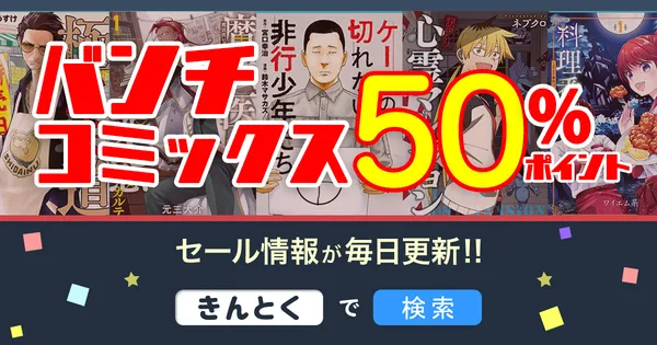 【Kindleセール】50%ポイント「極主夫道・魔法医レクス・山と食欲と私」バンチコミックス