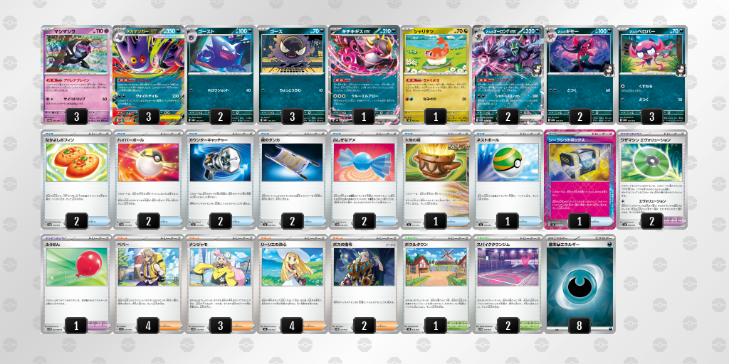 従来のマリィのオーロンゲデッキをメガゲンガーに入れ替えたようなデッキになっております。