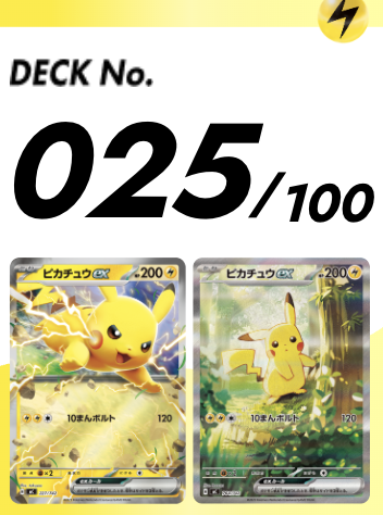 「ピカチュウex SAR仕様(スタートデッキ100)」は、「スタートデッキ100 バトルコレクション」のNo.025デッキに収録されています。「スタートデッキ100 バトルコレクション」を購入して自引きを狙うのが基本的な方法です。