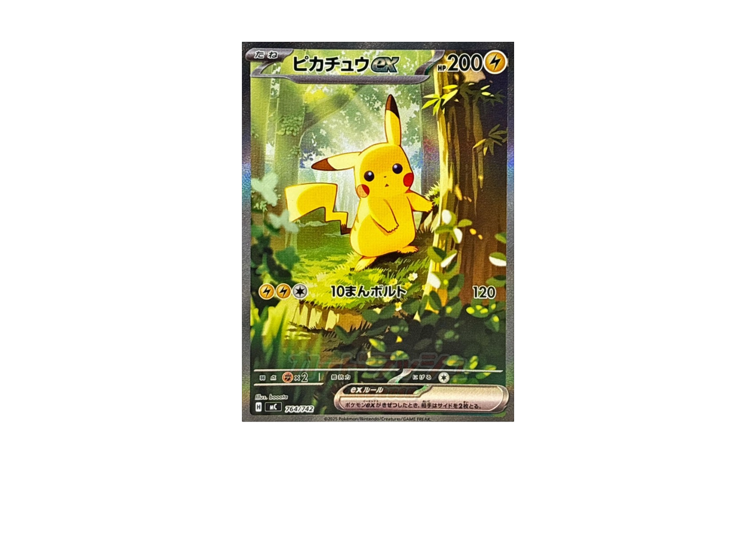 ピカチュウは世界中で絶大な人気を誇るポケモンです。今回のSAR仕様のカードに描かれているイラストは、森の中でふいに遭遇したかのような、きょとんとした表情が可愛らしく、ファンやコレクターから高い評価を得ています。長期的な鑑賞にも適したデザインとして注目されています。