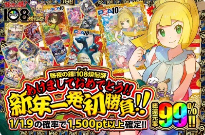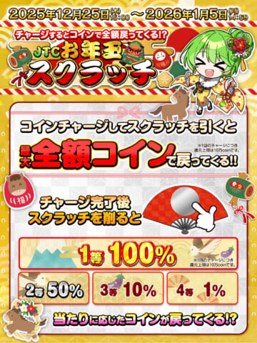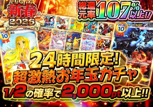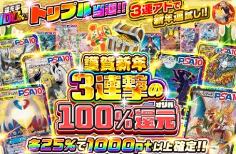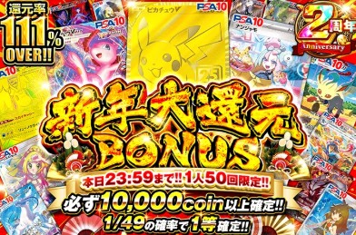 日本トレカセンターでは1月5日(月)14:59までの期間中、コインをチャージすると最大で100%のコインが戻ってくる「お年玉スクラッチ」も開催しているので、コインをチャージする予定の方はキャンペーン中にしておくとお得です。
