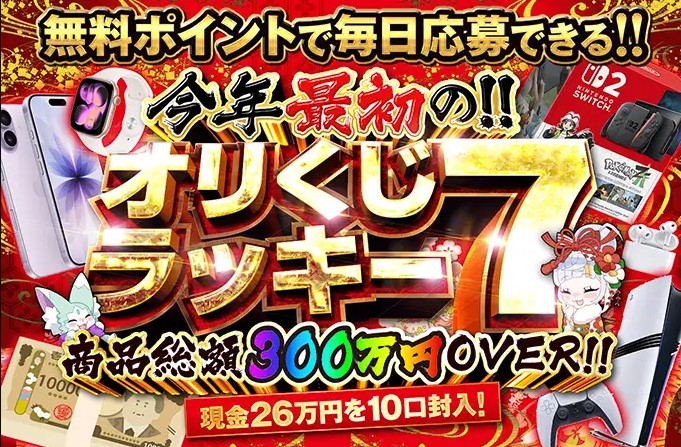 また、無料ポイントで毎日応募できるアプリ限定のラッキーくじも実施しています。