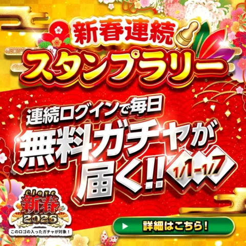 cloveオリパでは年始キャンペーンとして1月7日(水)までの期間中、新春ロゴ入りのガチャを毎日引くことで、アド確定ガチャが配布されるキャンペーンを実施しています。
