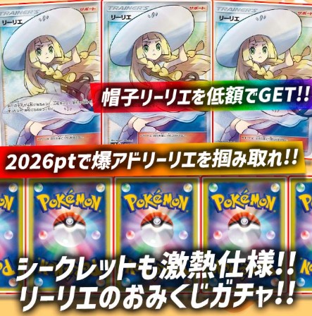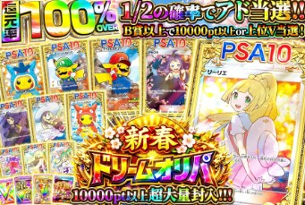 ペンギンガチャでは、全口PSA10のカードが確定や、帽子リーリエが当たる新春オリパを開催しています。
