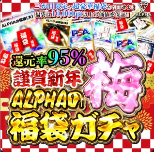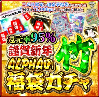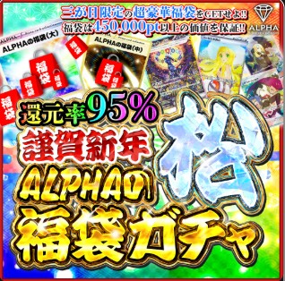 Card Shop ALPHAでは、松・竹・梅の3種類の福袋ガチャを実施しており、福袋が当たれば爆アドを獲得することができます。
