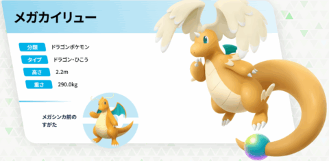 「メガカイリュー」は、最新作『Pokémon LEGENDS Z-A』で初めて登場した「メガシンカ」ポケモンです。