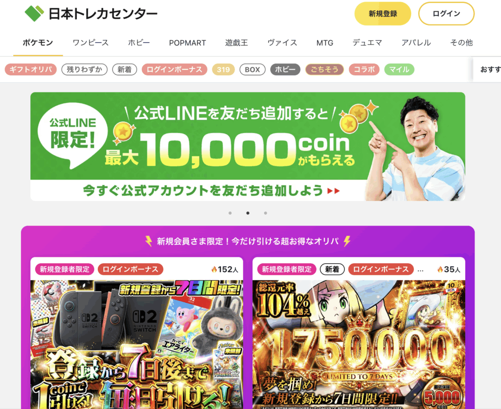 これらの初回特典を活用すれば、リスクを抑えて無料でオリパを試したり、お得に始めることが可能です。まずは無料でポイントを手に入れてオリパを引き、どこのオリパが自分に合っているか探すのも賢い方法です。複数のサイトで初回特典を利用することで、より多くのチャンスを得られるでしょう。