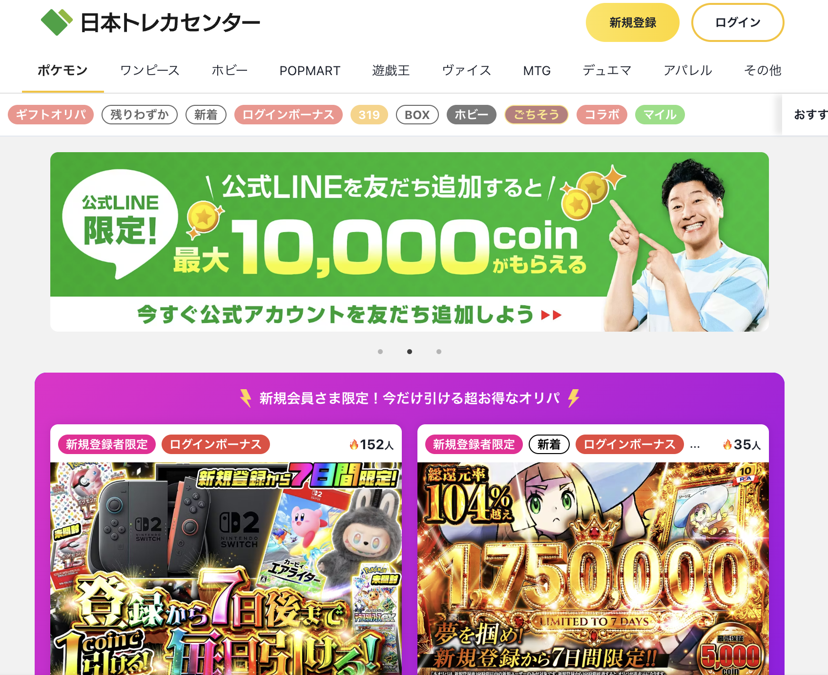 会員ランク制度もあり、シルバー会員以上はログインボーナスオリパなど、ランク会員限定のオリパを引くことも可能です。